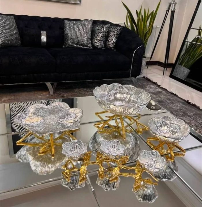 - شامل انواع ظروف پذیرایی: ست پذیرایی لوتوس شامل چندین ظرف مختلف است که برای پذیرایی از انواع خوراکیها طراحی شده است. این ست شامل ظرفهایی برای میوه، شیرینی، آجیل و اردور سه خانه میباشد که تمامی نیازهای پذیرایی شما را برطرف میکند.